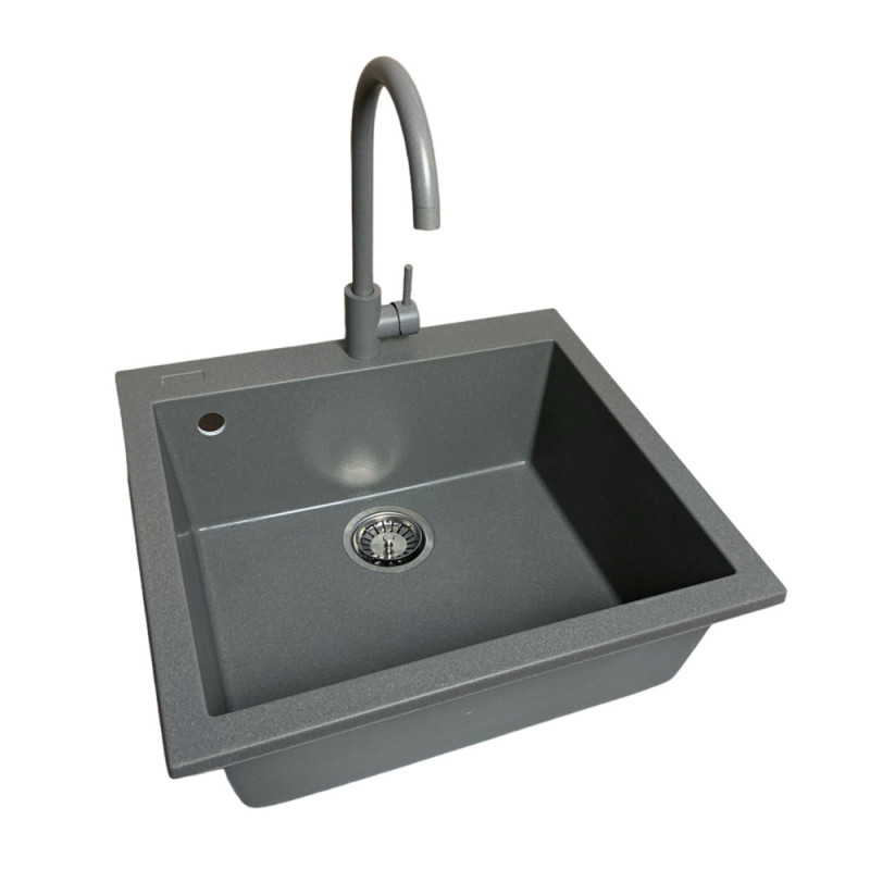 Adamant Kitchen set Univer, artificial stone, square, no drainboard, 560х500х200mm, bowl - 1, over-mounted, grey + mixer + dispenser + glass rinser + colander (4824296106604)