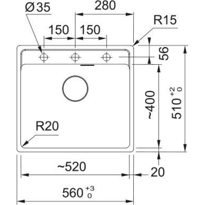 Franke Мийка кухонна Maris, фраграніт, прямокутник, без крила, 560х510х200мм, чаша - 1, врізна, MRG 610-52 TL, онікс (114.0668.867)