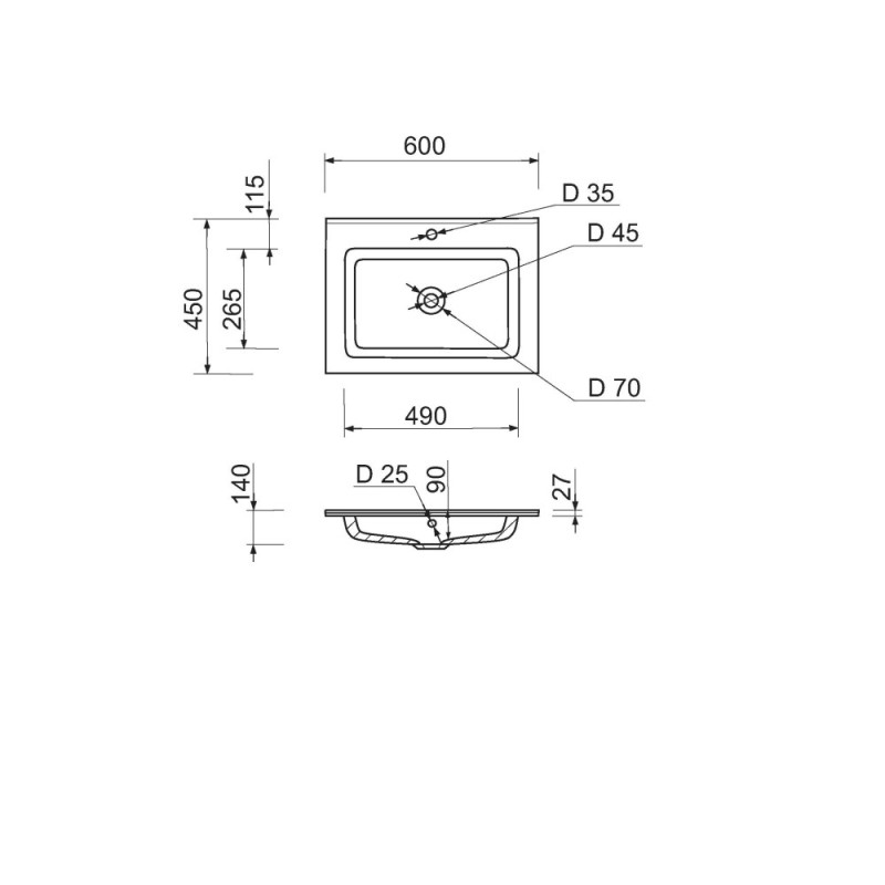 Adamant Набір для ванної кімнати, раковина, умивальник FLATE 60, штучний камінь, прямокут., з сифоном Click-Clack + змішувач (4824296207701)