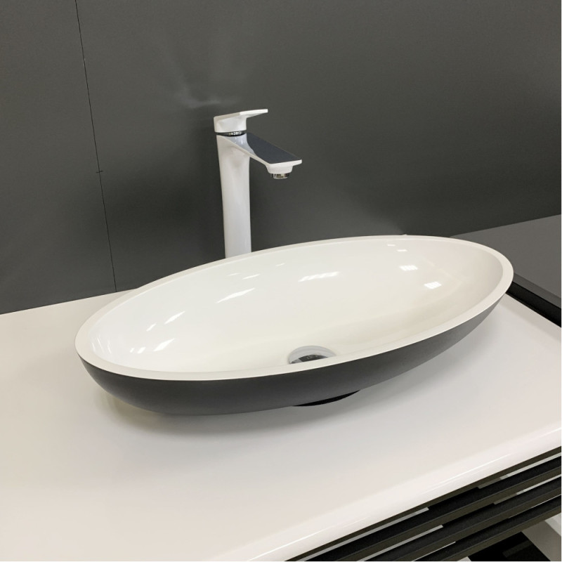 Adamant Раковина, умивальник ANDERE NEW, штучний камінь, овальна, без отвору для змішувача та переливу, 590х295х130мм, врізний, чорно-білий (100003856)