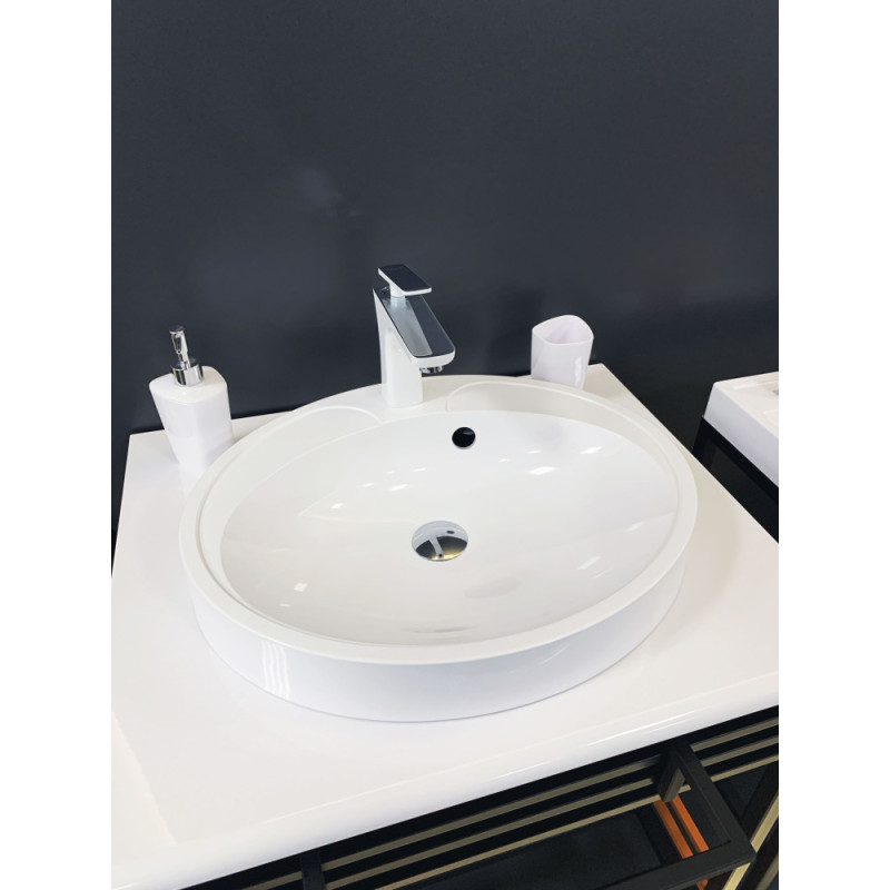 Adamant Раковина, умивальник Lauf New, штучний камінь, овальна, без отвору для змішувача, з отвором для переливу, 540х445х130мм, накладний, білий (100002889)