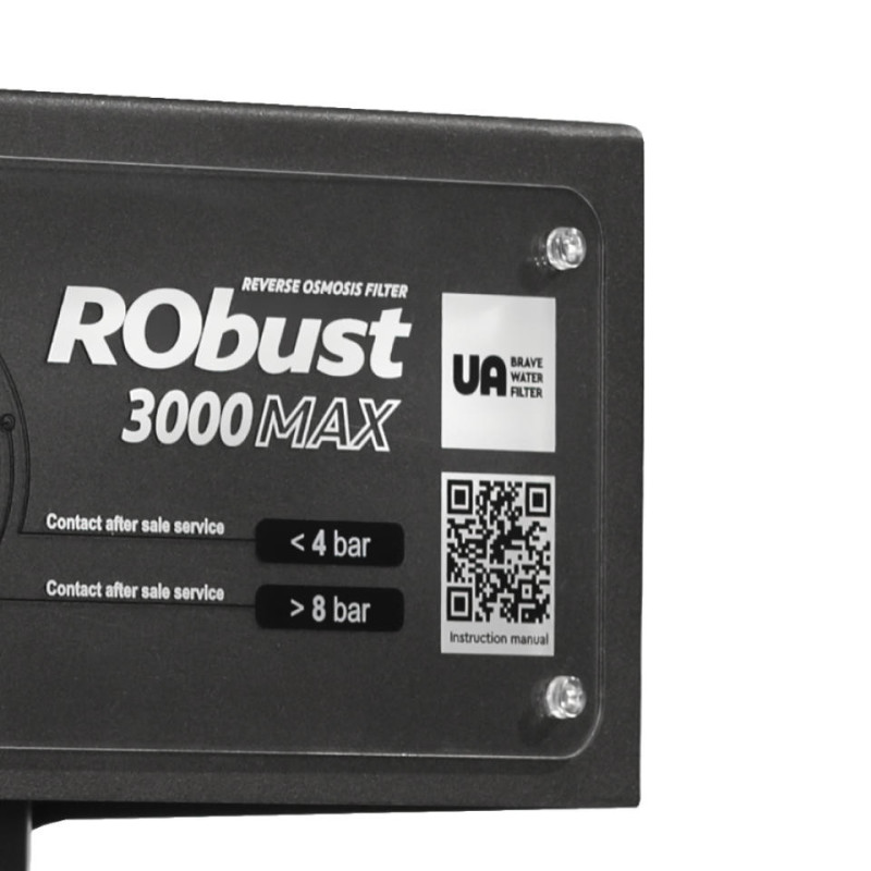 Instruction, RObust 3000 water purification filter, pre-cleaning cartridges, reverse osmosis membranes, drain saddle, set of mounting fittings, set of tubes, service keys