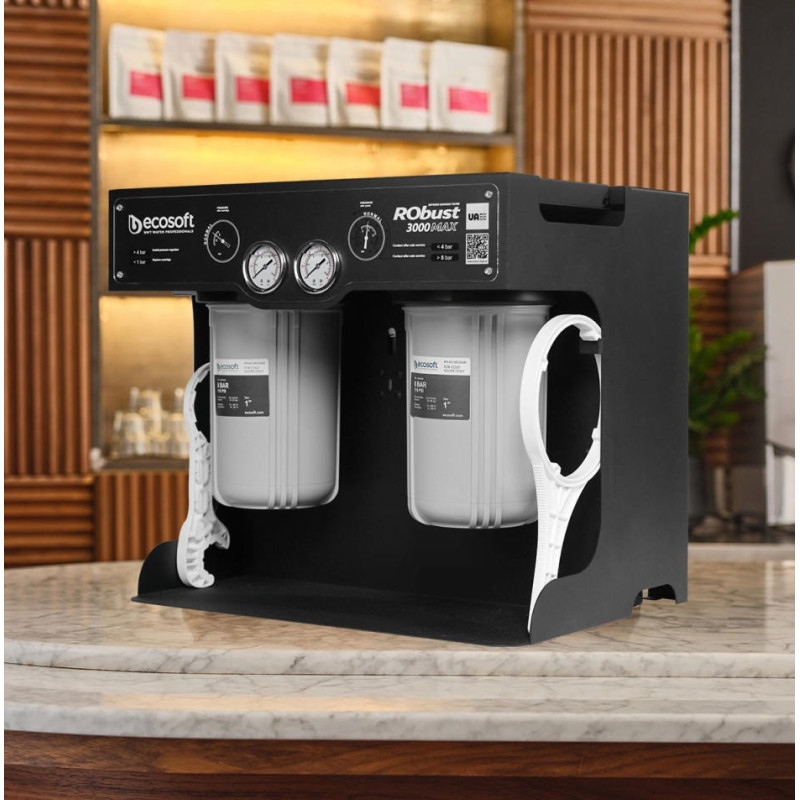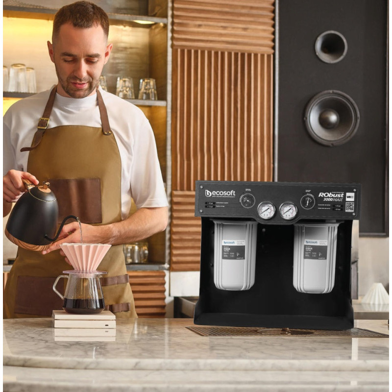 The Ecosoft RObust 3000MAX reverse osmosis filter in compact design with high performance purifies water for drinking and meal preparation in large volumes. Pre-filtration removes mechanical impurities, active chlorine, and organic compounds, while the membrane eliminates up to 99.8% of dissolved contaminants along with viruses and bacteria. Capacity reaches 3000 L of purified water per day for continuous use. The unit suits restaurants needing steady clean water supply. Two purification stages deliver safe quality for guests and kitchen needs.
