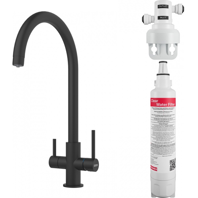 Franke Washbasin tap Lina Clear Water, spout lenght- 216 mm, swivel, 1+1filter connection, matt black (160.0702.681)