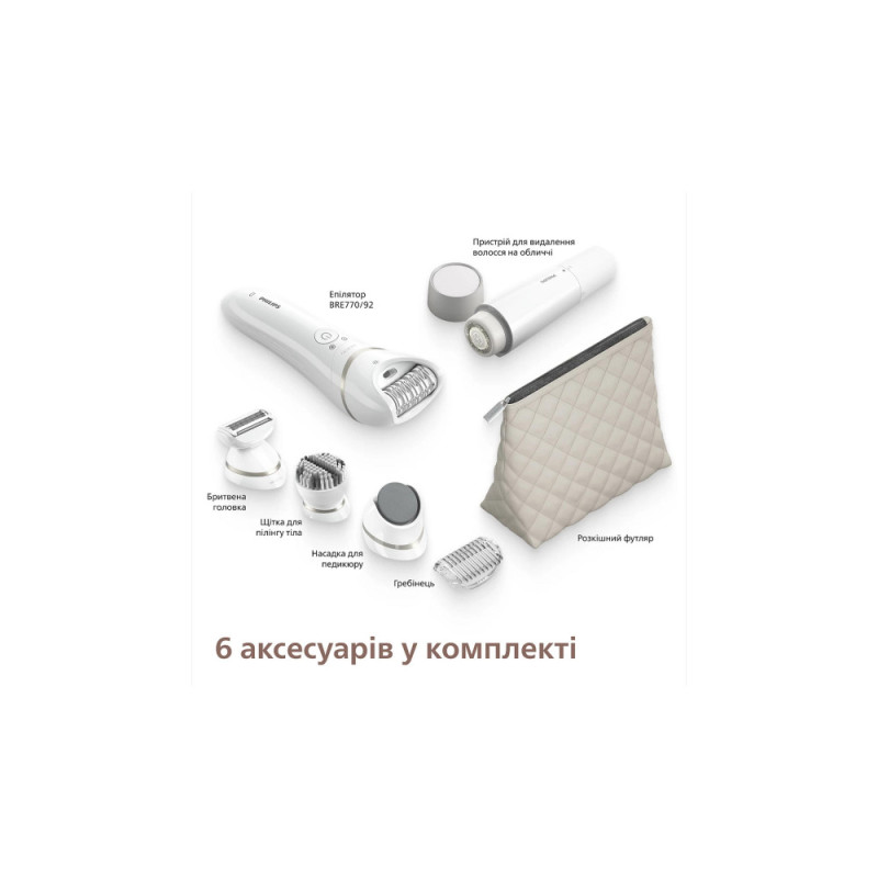 Philips Епілятор Philips Series 9000 дисковий, аккумул., пінцет.-32, волог.+сух., насадок-6, футляр, білий (BRE770/92)