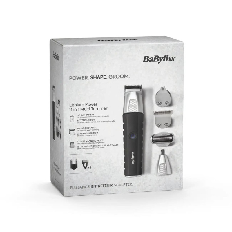 The BaByliss Lithium Power hair clipper set is a multifunctional multi-trimmer for beard, mustache, head hair, and body hair care, as well as for removing nose and ear hair. The set of attachments allows you to trim length, shape contours, and precisely trim different areas with one device. The powerful motor maintains stable performance when cutting hair of varying thickness. The lithium-ion battery provides up to 240 minutes of battery life. The water-resistant design makes it easy to clean after use.