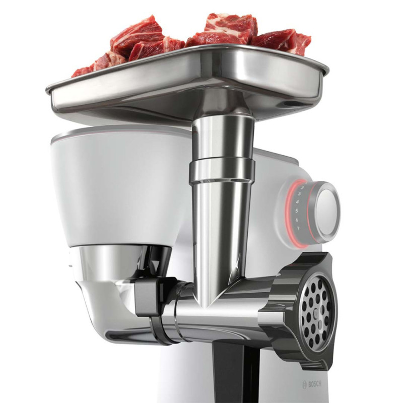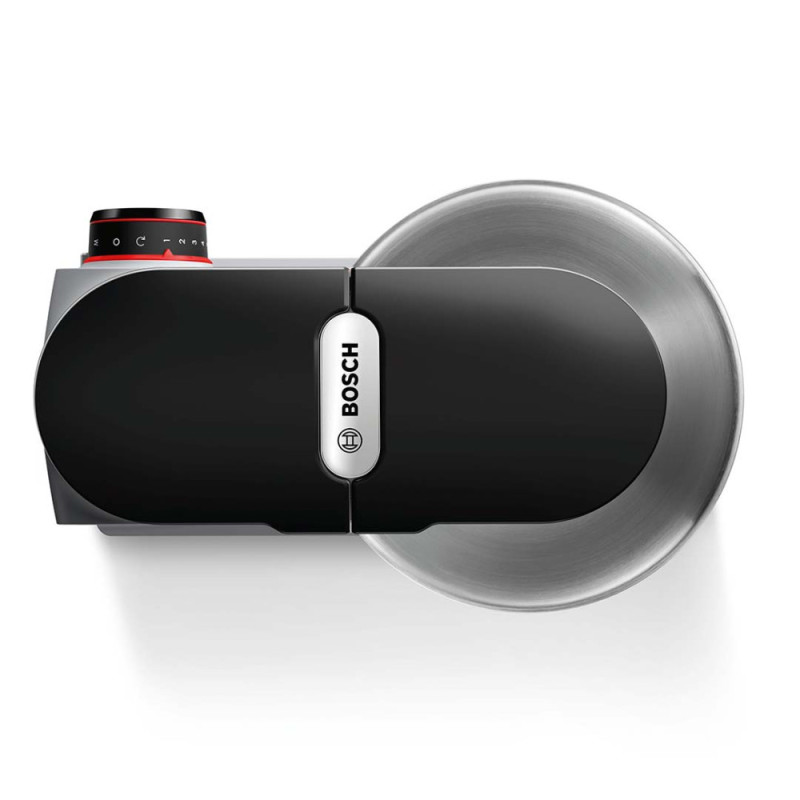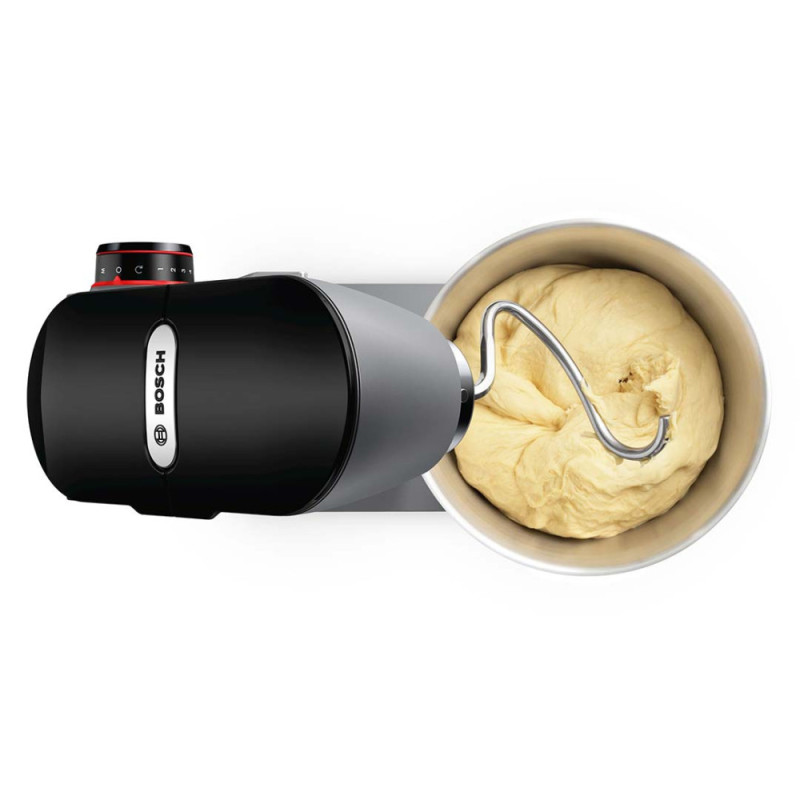 Features:EasyArmLift, smooth start, 3D mixing thoroughly mixes ingredients, electronic power control, compatible with Bosch additional attachments