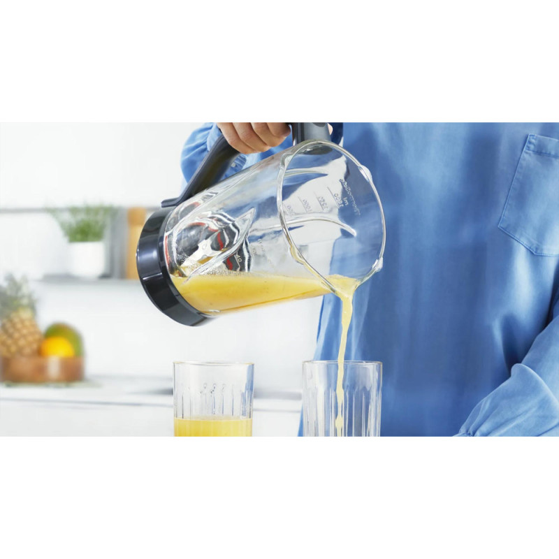 The Bosch MUM9B34S27 kitchen machine with 1400 W motor is built for powerful mixing, kneading, and blending. It features a 3.5 kg stainless-steel bowl, 6 attachments, 3D PlanetaryMixing, and EasyArmLift. Durable metal-plastic housing and a heat-resistant glass blender ensure long-lasting performance.