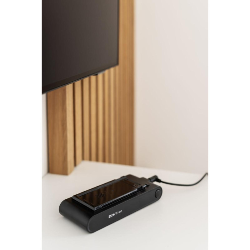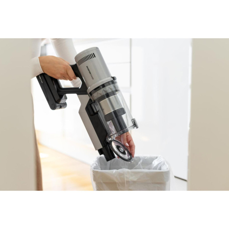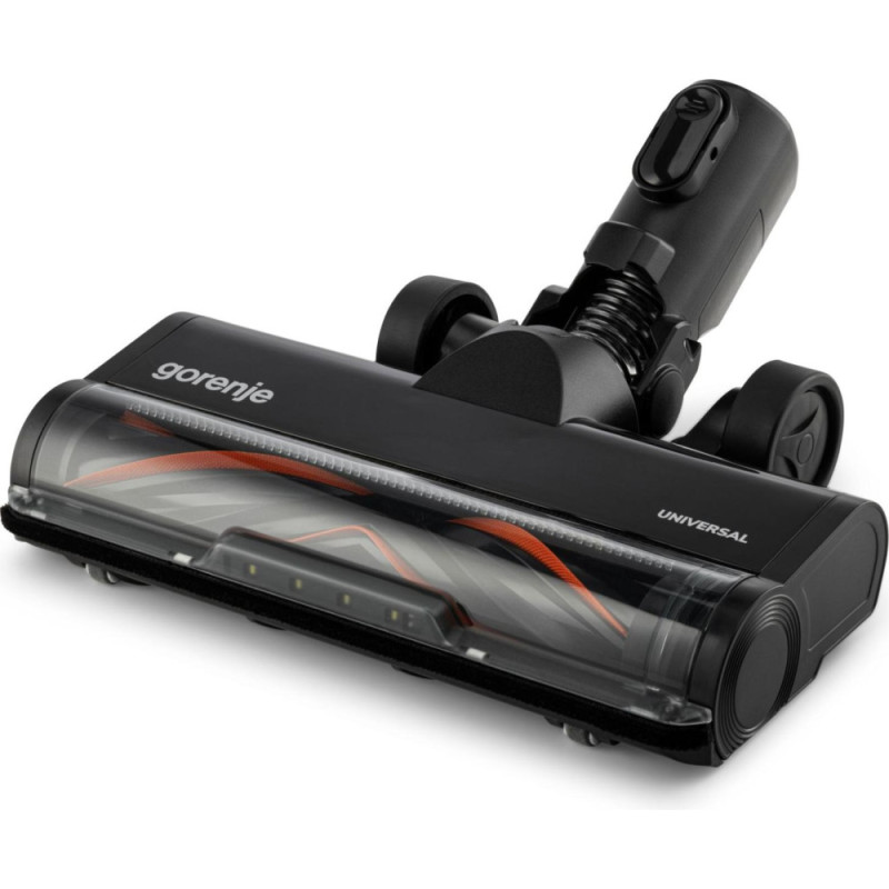 The Gorenje cordless vacuum cleaner is a 2-in-1 rechargeable model designed for dry cleaning. It can be used as both an upright and a handheld vacuum cleaner on various types of surfaces. It is equipped with an inverter motor and a 25.9 V battery, providing up to 50 minutes of runtime on a single charge. The 0.6-liter dust container simplifies maintenance without the need for bags.