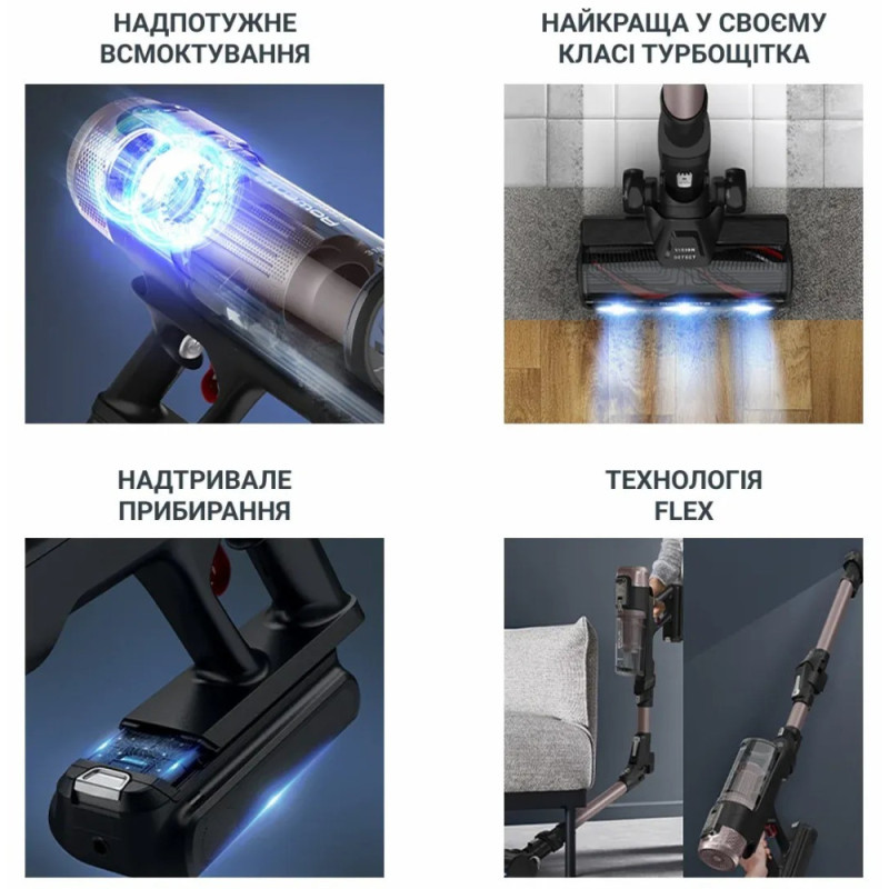 filter change indicator, FLEX technology, HEF system filtration system, intelligent cleaning: automatic adjustment of suction power according to the type of floor
