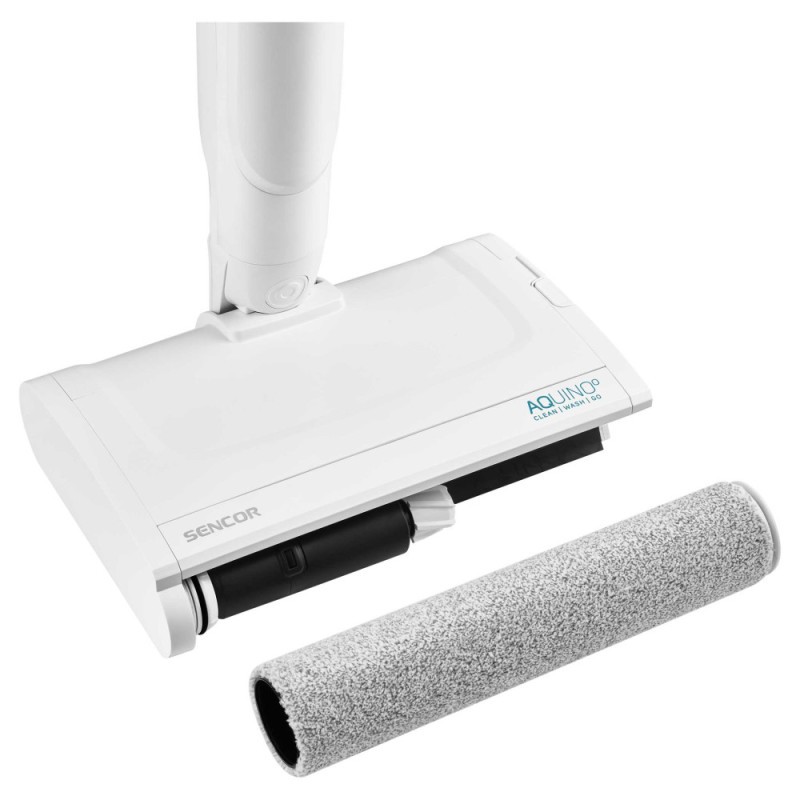 Sencor SVW 3500WH Aquino is a cordless hard floor washer designed for all types of hard surfaces. It features the Power Spin Aqua 8 system and a 0.4 L water tank. The device operates up to 40 minutes on a single charge and weighs only 2.8 kg. It includes a HEPA filter and a self-cleaning brush function.