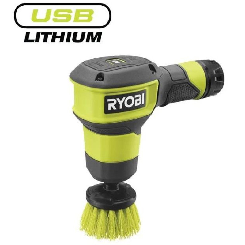 Ryobi RSCR4-0 USB Lithium 4 V cordless scrub brush is a compact helper for quick cleaning of hard-to-reach areas.