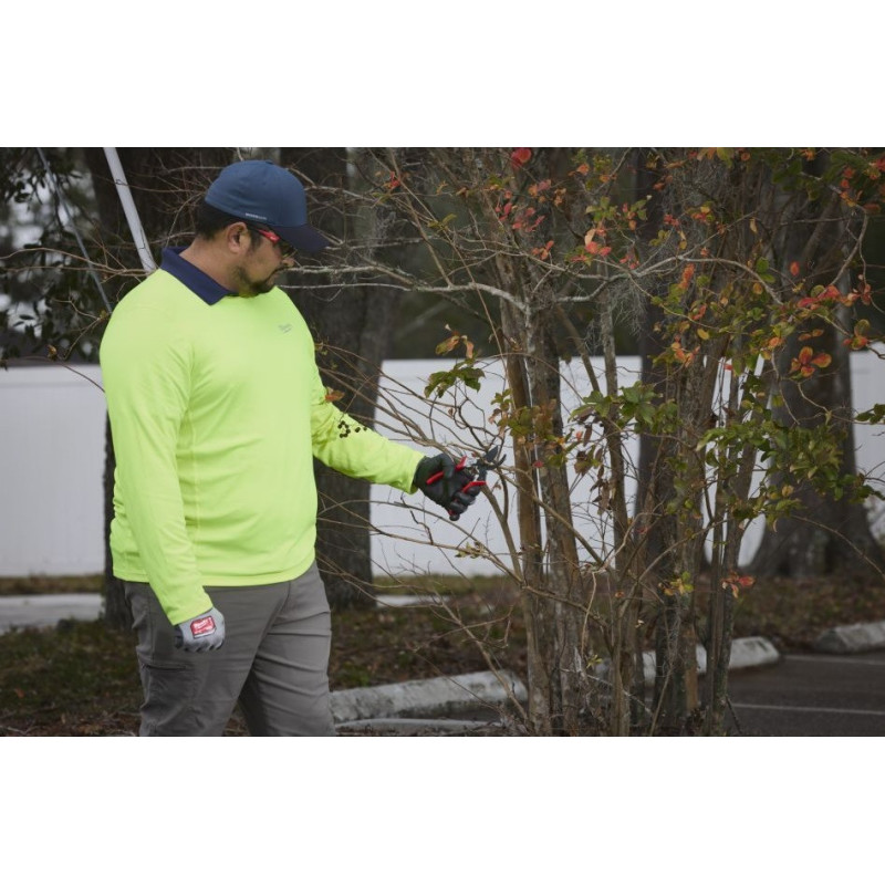 The Milwaukee (4932498622) flat blade pruner for cuts up to 25 mm is equipped with stainless steel blades for precise and clean cutting of branches and stems. Ergonomic handle with anti-slip coating provides comfort and control for extended use. Lightweight at 0.3 kg and convenient for gardening tasks. This product suits plant trimming in gardens and repair.