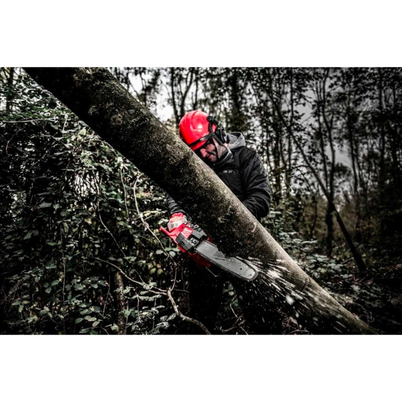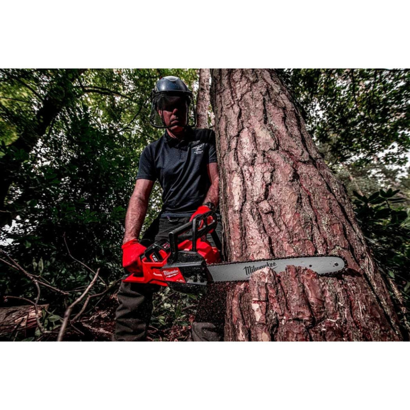 The Milwaukee M18 cordless chainsaw features a POWERSTATE brushless motor and a 40 cm bar. The tool delivers high cutting performance, automatic lubrication and REDLINK PLUS protection.