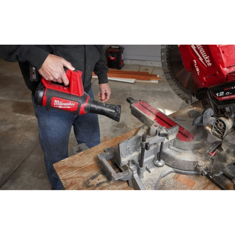 The Milwaukee M12 BBL-0 is a compact cordless blower designed for cleaning workspaces and tight areas. Air speed up to 177 km/h provides effective removal of dust and debris. Variable speed control allows precise airflow adjustment. Interchangeable nozzles expand application options. The lightweight design supports one-handed operation.