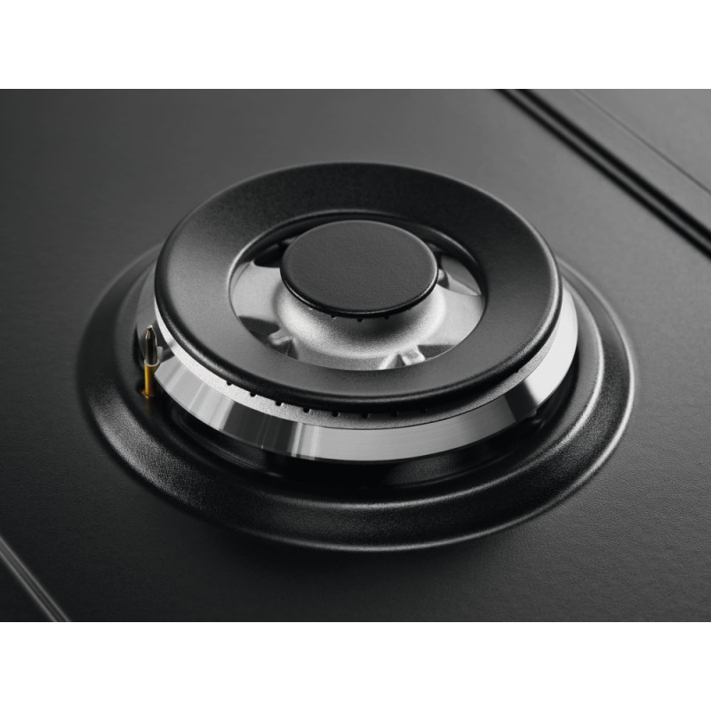 Electrolux KGS6436K — a 60 cm black gas hob with cast iron grates! 4 burners (up to 4 kW WOK), electric ignition, and gas control — a reliable cooking partner with safety and convenience!