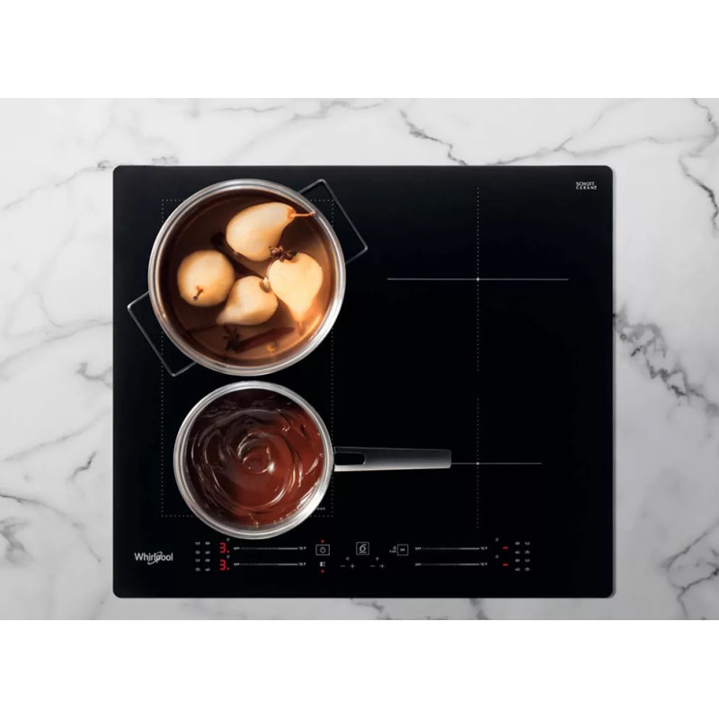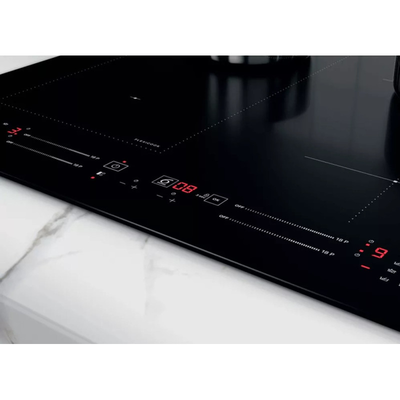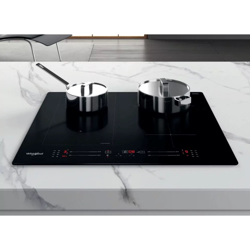 Whirlpool induction glass-ceramic hob - WLS7960NE 4 induction rings. FlexiCook zone technology, allowing to combine multiple burners into a single cooking zone, for larger pots and pans. Intuitive slider, for effortless control of your appliance settings. This Whirlpool induction glassceramic Hob features: An elegant technology, that heats the pan, not the hob, reducing energy dispersion and providin perfect cooking results.
