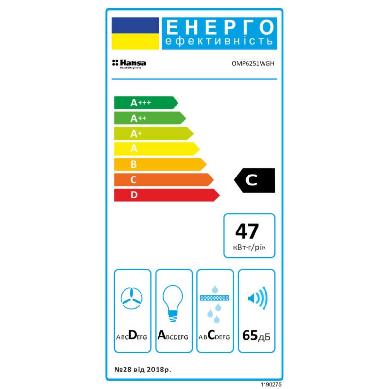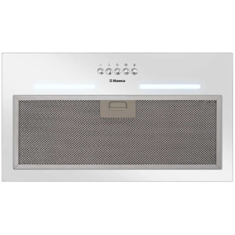 The built-in cartridge hood Hansa OMP6251WGH with a width of 55 cm is designed for installation inside kitchen cabinets. Maximum performance reaches 389 m³/h, allowing quick removal of vapours and odours during cooking. Three operating speeds enable precise ventilation control, while the LED strip delivers even cool lighting to the work surface. Button controls are positioned on one side of the panel.