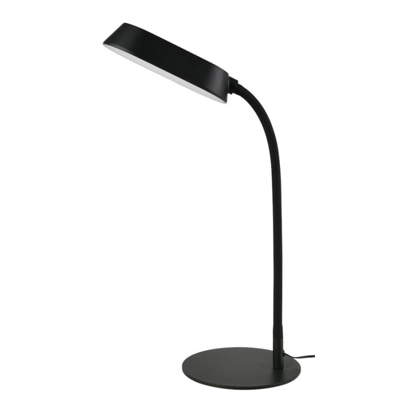 The OSRAM Panan DISK METAL 10 W table lamp is an LED lamp with a metal body, dimmer, and color temperature change of 3000/4000/6500 K. It produces a light output of 700–730 lm, has a black matte finish, and an adjustable tilt angle for convenient adjustment of the working light.