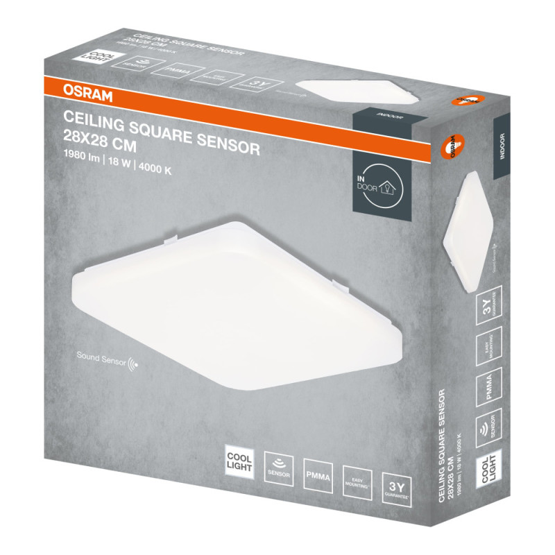 Osram Surface-mounted light fixture with sensor, OSRAM CEILING SQUARE 18Вт 4000K 1140 lm (4099854648564)