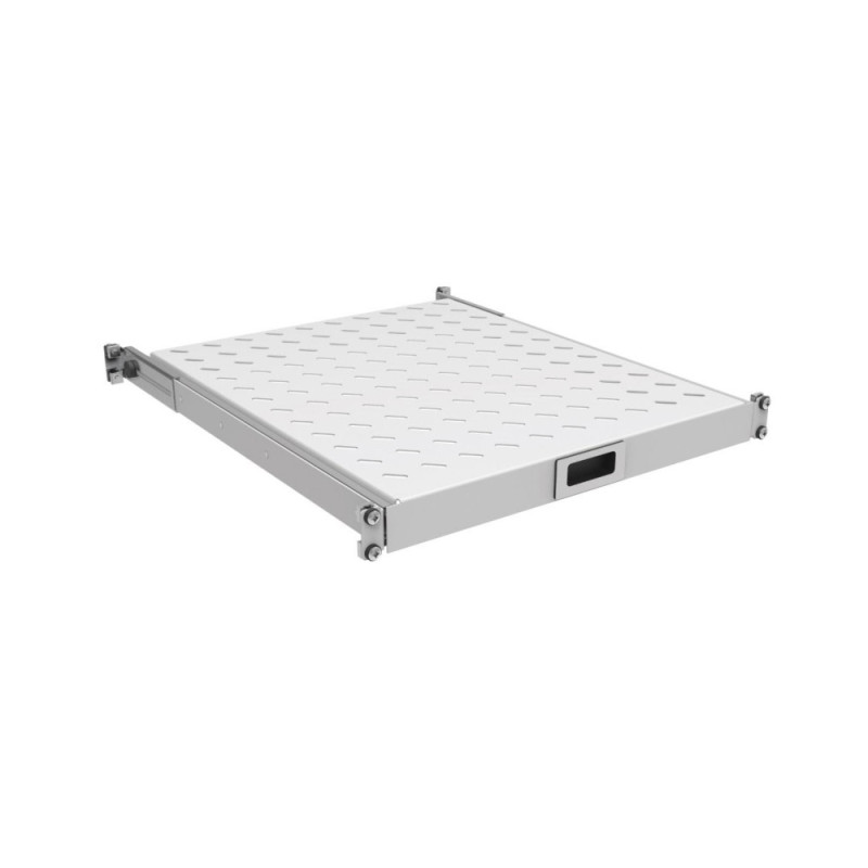 The ZPAS 19-inch 1U pull-out shelf is designed for installation in server and telecommunications cabinets. Depth adjustment in the range of 450–550 mm allows the shelf to be adapted to different cabinet configurations. Four-point mounting ensures stable fixation and even load distribution. The maximum permissible load of the shelf is 30 kg.