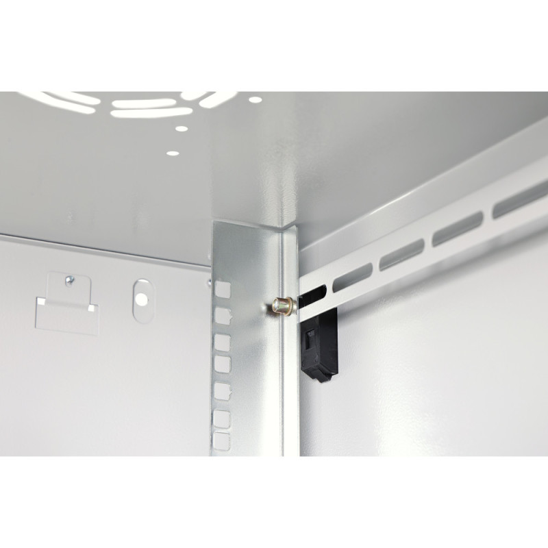 The DIGITUS Dynamic-N 19" wall-mounted cabinet is designed for compact equipment deployment in space-constrained environments. The solid steel construction supports loads up to 60 kg and ensures stable operation. Pre-punched cable entries and optional ventilation support efficient cable and airflow management. Adjustable mounting rails allow flexible installation of various components. Flat-pack delivery improves logistics and storage efficiency.