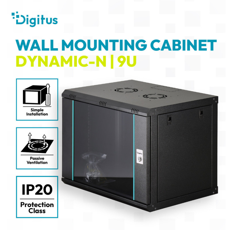 Digitus Шафа DIGITUS 19 , 9U, Wall Mounting Dynamic-N, 600x600 мм, 60кг максимально, розібрана, чорна (DN-37107)