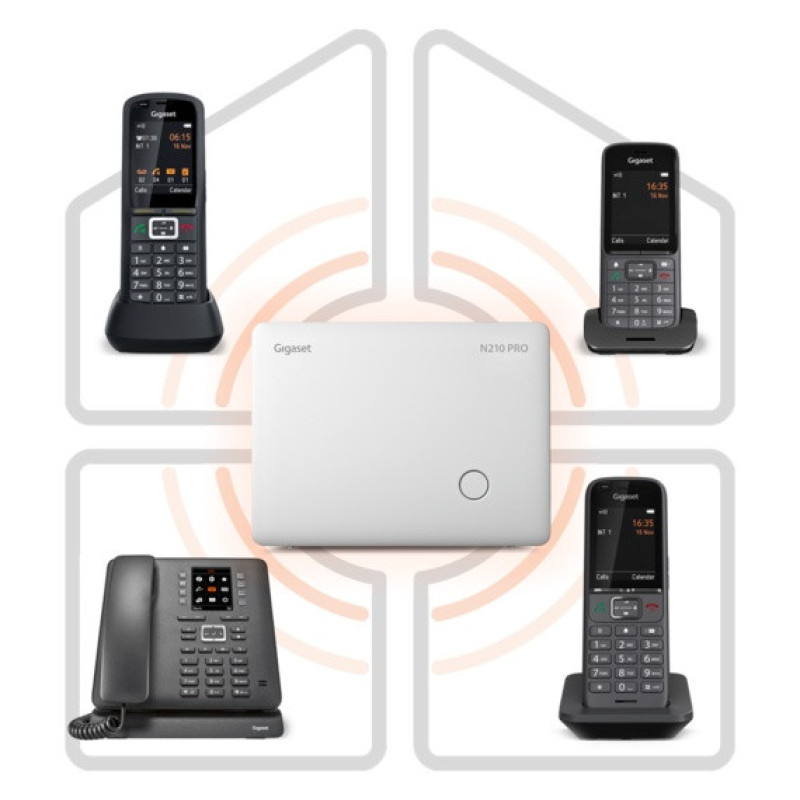 Gigaset Base station DECT Analog N210 IPRO, FXO port, DECT/GAP, Power Supply, up to 2 calls in parallel, up to 6 handsets (S30852-H2818-R102)