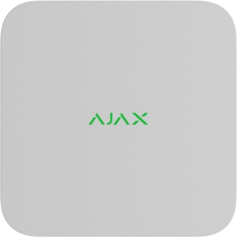 Ajax NVR DC white 8-channel is a network video recorder for IP cameras within the Ajax ecosystem. It supports up to eight cameras with 4K resolution and ONVIF compatibility. Live view and video archive are managed via the Ajax app. The recorder provides local storage with access control. Designed for compact surveillance systems.