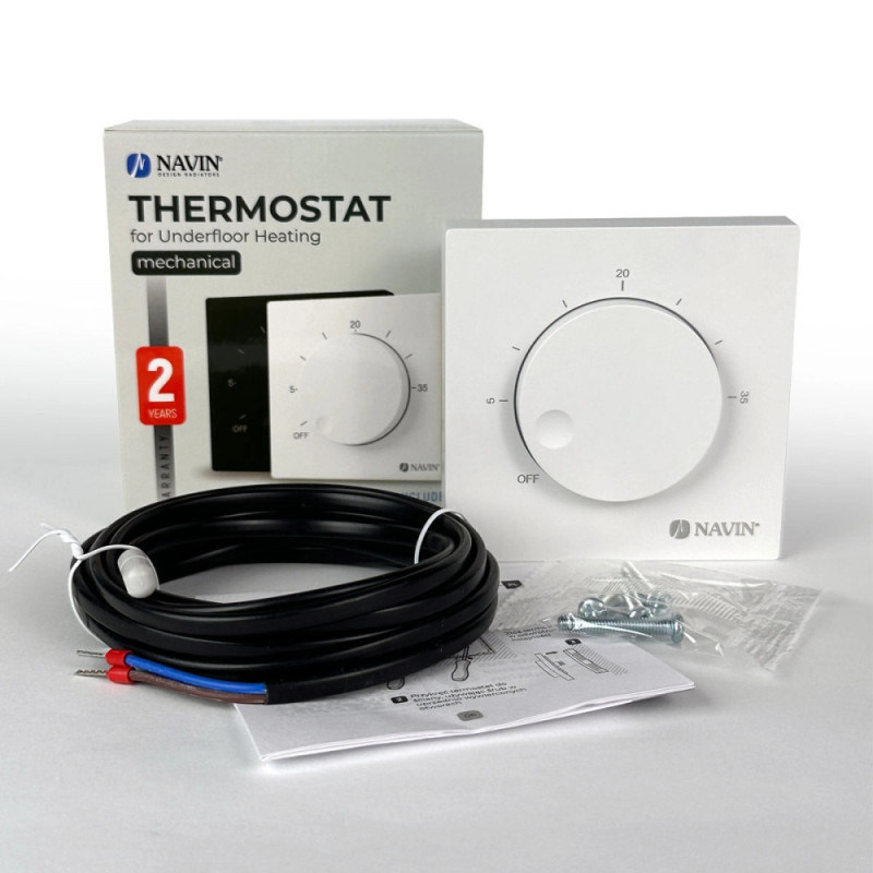 Navin EH84WM-16A thermostat 5...35 °C for underfloor heating mechanical surface wired sensor 16A 230V white (24-160171-0140)