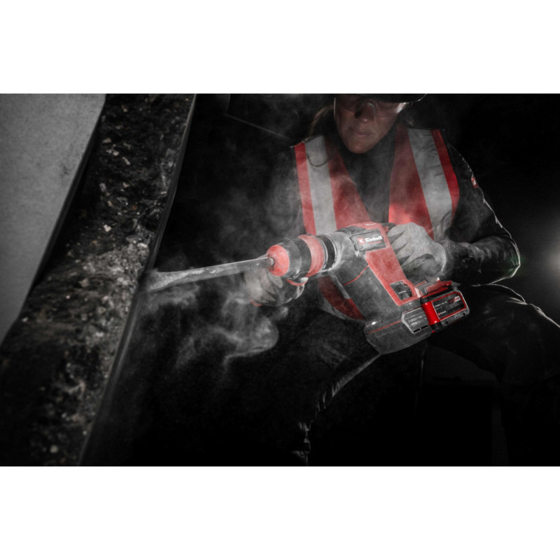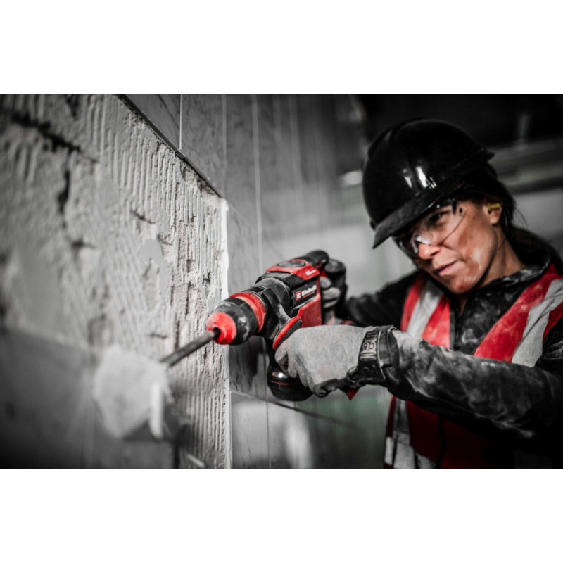 Einhell Professional TP-DH 18/4 Li BL-Solo — компактний акумуляторний відбійний молоток для легких демонтажних робіт і точного довбання. Енергія удару 4,0 Дж, безщітковий двигун і система Power X-Change забезпечують мобільність без мережі. SDS-Plus із напівавтоматикою пришвидшує заміну зубил, а 16-позиційне встановлення дає змогу точно задати кут.