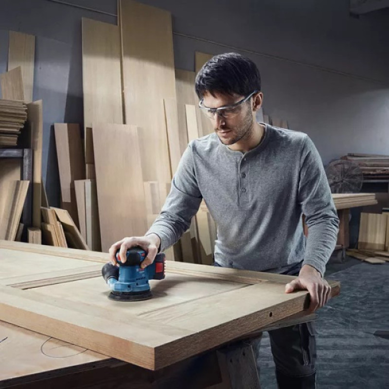 Акумуляторна ексцентрикова шліфмашина Bosch GEX 185-LI підходить для шліфування деревини та бетону. Регульовані оберти від 6000 до 10000 об/хв і коливання 12000–20000 кол/хв забезпечують контроль над поверхнею. Ексцентриситет 2,5 мм гарантує рівномірну обробку. Шліфувальний диск 125 мм кріпиться на липучці, пил відводиться через систему пиловидалення. Компактна конструкція важить 0,9 кг, оснащена безщітковим двигуном та електрорегулятором обертів.