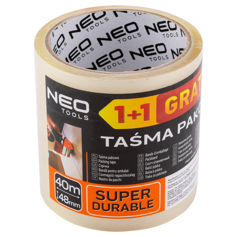 Neo Tools Стрічка пакувальна Neo Tools, 40мх48мм, прозора набір 2шт (56-058)