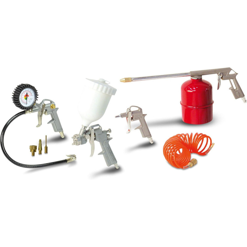 Особливості:просте підключення до стандартних пневмошлангів та компресорів, основні функції: продувка, підкачка шин, фарбування та універсальне використання з компресором