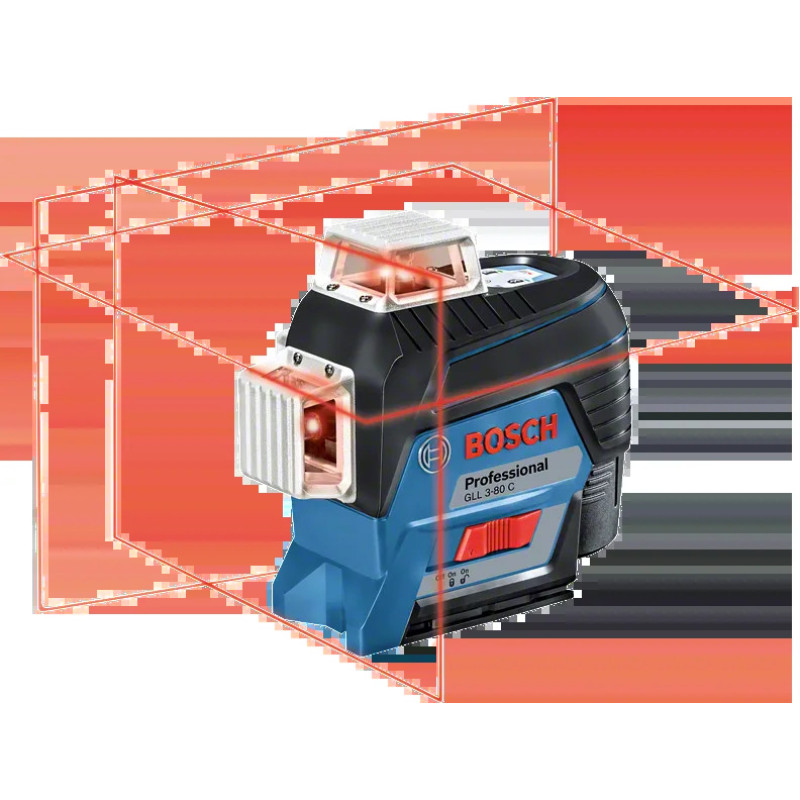 Bosch Professional GLL3-80C створює три яскраві лазерні площини 3×360°, що допомагають швидко вирівнювати стіни, стелю й підлогу.