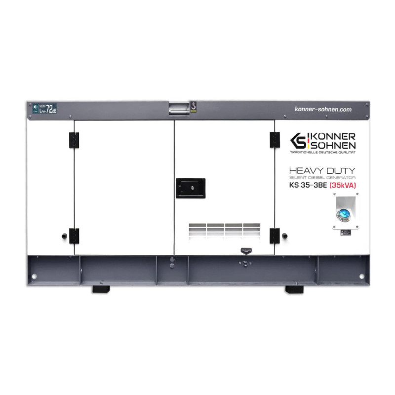 Дизельний генератор Könner & Söhnen KS 35-3BE призначений для трифазного електропостачання об’єктів із високим та стабільним енергоспоживанням. Модель побудована на базі низькообертового чотирициліндрового двигуна Baudouin з водяним охолодженням. Оснащення передстартовим підігрівом, ATS та цифровим контролером забезпечує контрольовану роботу в різних кліматичних умовах. Шумозахисний корпус із класом захисту IP54 дозволяє експлуатацію на відкритих майданчиках.