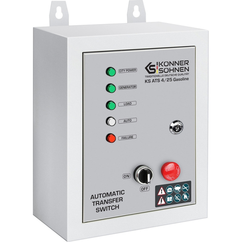 Könner & Söhnen Блок автоматичного введення резерву (АВР) Konner&Sohnen KS ATS 4/25 Gasoline, 230-400В, 5.75(11.5)кВт, 25(50)А, 13кВт, 6кг (KSATS4/25GASOLINE)