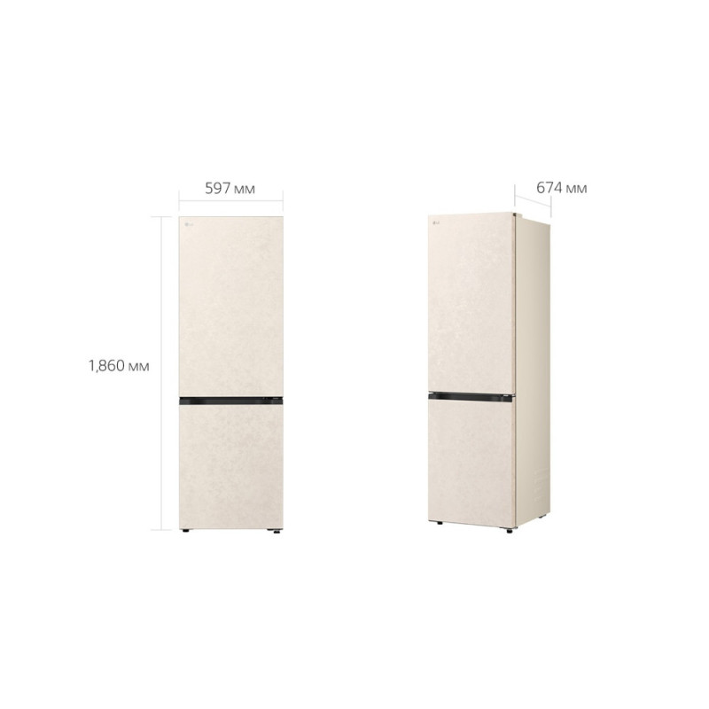 LG Холодильник з нижн. мороз., 186x60х68, холод.відд.-220л, мороз.відд.-113л, 2дв., E, NF, інв., диспл внутр., зона св-ті, бежевий (GC-B459EEYM)