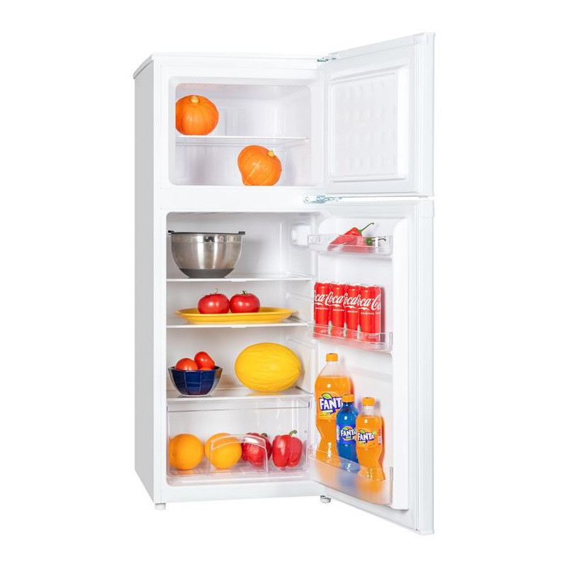 Холодильник Snaige FR15SM-PT000EH з верхньою морозильною камерою має загальний об’єм 151 л (112 л холодильне відділення + 39 л морозильне). Білий дводверний корпус висотою 123 см оснащений механічним регулюванням температури та LED-освітленням. Діапазон у холодильнику становить 2–8 °C, у морозильнику –14…–22 °C. Річне споживання енергії 178 кВт·год відповідає класу E. Рівень шуму 40 дБ(A) та можливість перенавішування дверей додають практичності.