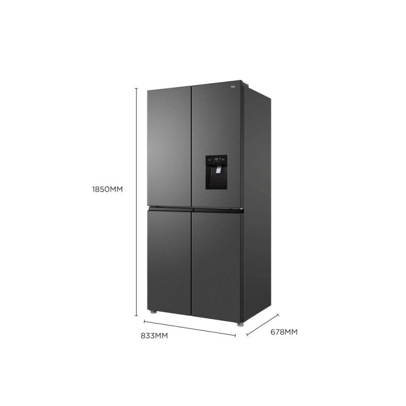 TCL Холодильник SBS, 185х84х68, холод.відд.-297л, мороз.відд.-169л, 4 дв., A++, NF, інв., диспл зовн., диспенсер., нерж (RP466CSE1UA)