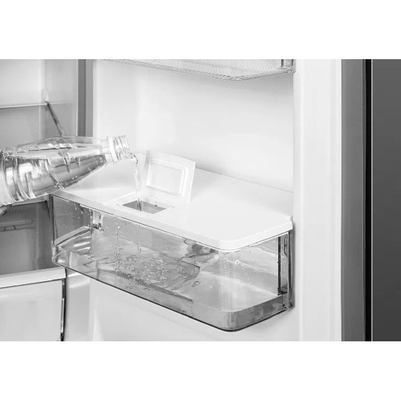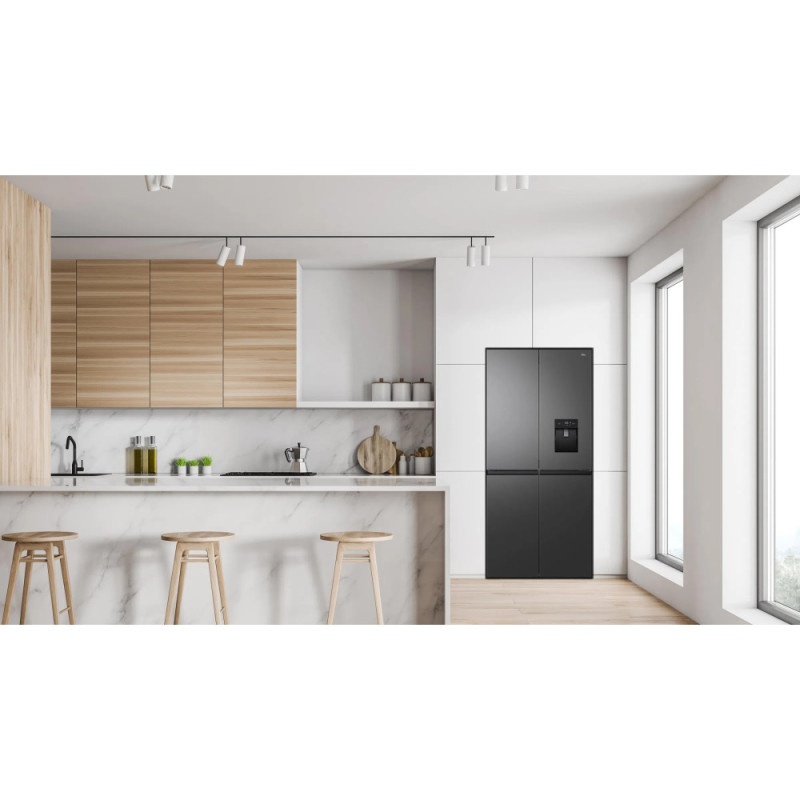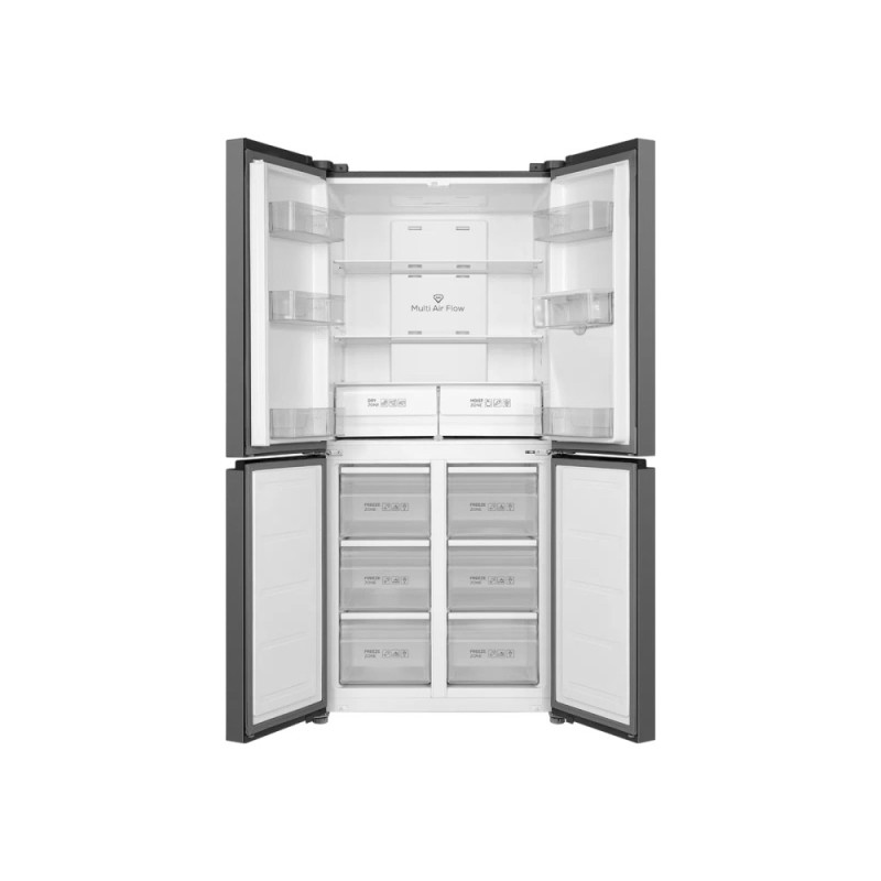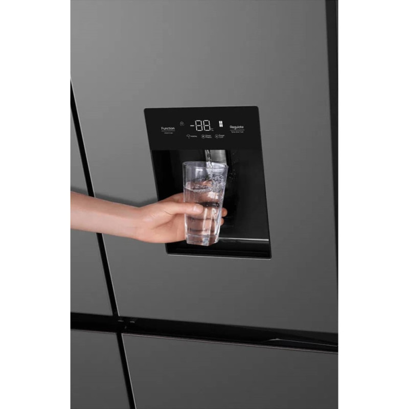 Стильний холодильник із загальним об'ємом 466 л (297 л - холодильна камера, 169 л - морозильна). Оснащений технологією No Frost, мультиповітряною системою охолодження, швидким охолодженням і заморожуванням. Має 4 двері, зручний диспенсер для води, LED-освітлення та сенсорний дисплей.