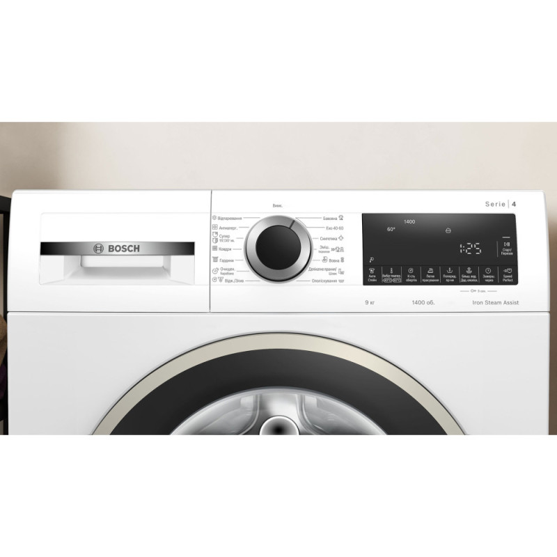 Пральна машина Bosch з фронтальним завантаженням призначена для ефективного прання з урахуванням типу тканин і характеру забруднень. Функція Iron Steam Assist зменшує кількість складок на одязі за допомогою пари. Система AntiStain автоматично адаптує параметри для видалення поширених плям. Двигун EcoSilence Drive забезпечує тиху та стабільну роботу. Програма AllergyPlus орієнтована на підвищені гігієнічні вимоги.