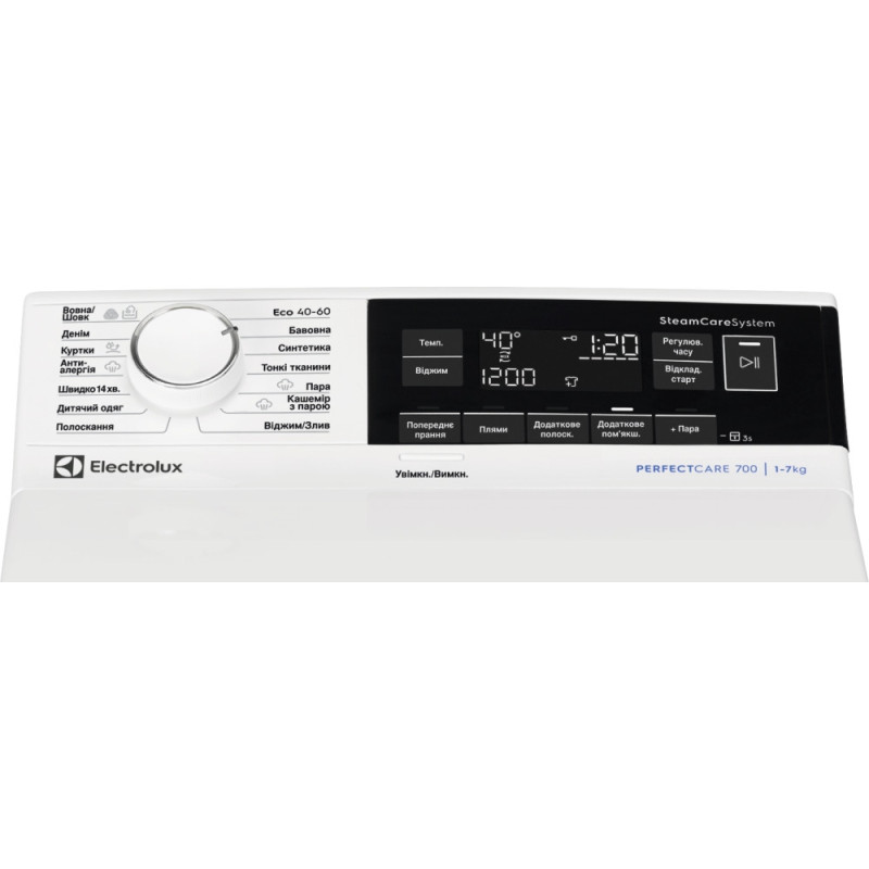 Electrolux Пральна машина Electrolux вертикальна, 7кг, 1300, A, 60см, дисплей, пара, інвертор, білий (EW7T3372U)