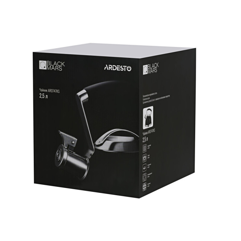 ARDESTO Чайник Black Mars, 2,5 л, чорний, нержавіюча сталь (AR0747KS)