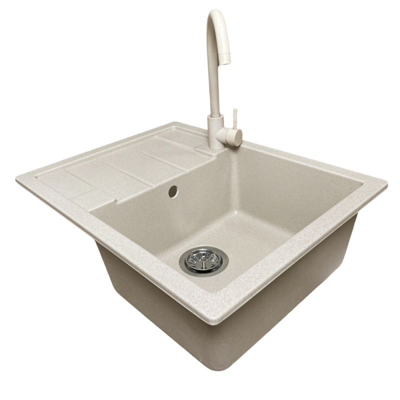 Adamant Мийка кухонна Anila, штучний камінь, прямокут., з крилом, 645х495х200мм, чаша - 1, врізна, Avena (182496100306)