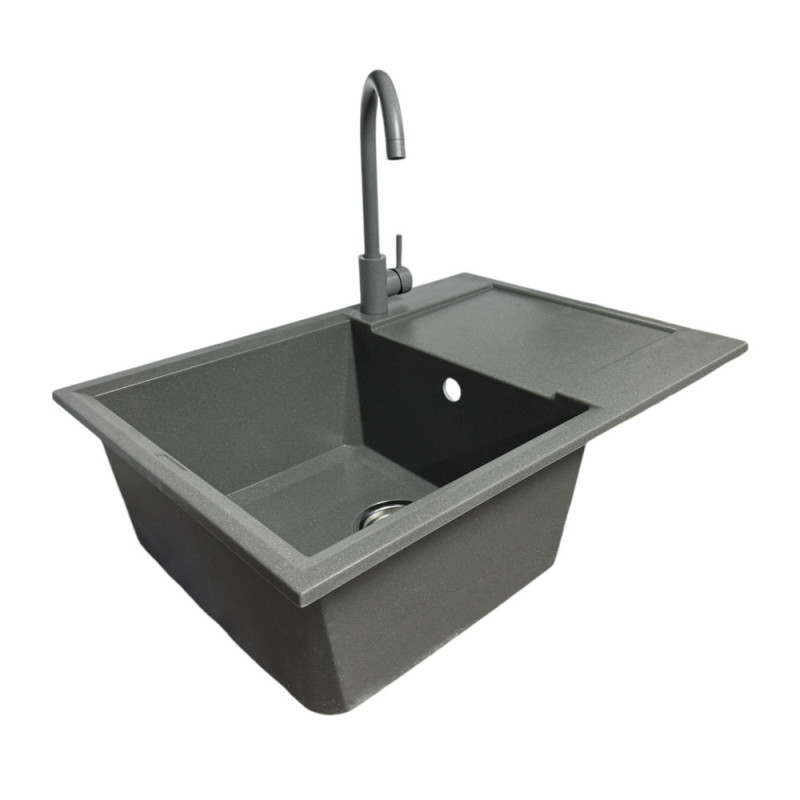 Adamant Набір кухонний Horizon Medium, штучний камінь, прямокут., з крилом, 700х500х230мм, чаша - 1, врізна, сірий + змішувач (4824296104404)