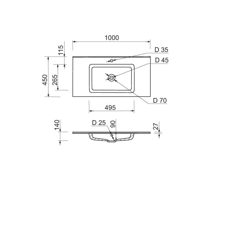 Adamant Набір для ванної кімнати, раковина, умивальник FLATE 100, штучний камінь, прямокут., з сифоном Click-Clack + змішувач (4824296207601)