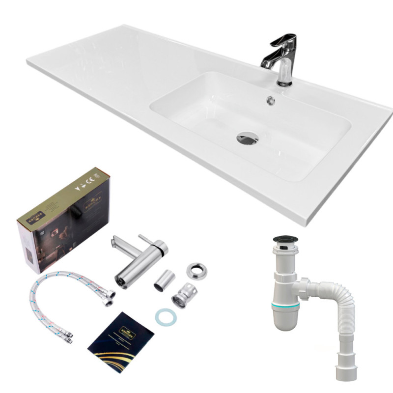 Adamant Набір для ванної кімнати, раковина, умивальник FLATE 120R, штучний камінь, прямокут., з сифоном Click-Clack + змішувач (4824296208501)