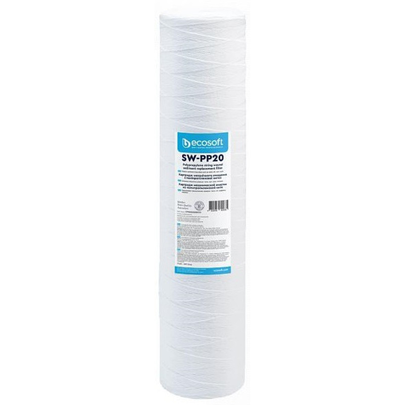 Картридж Ecosoft 4.5x20 "20 мкм з поліпропіленової нитки підходить для очищення води від іржі, піску, мулу. Забезпечує захист сантехніки і трубопроводів від пошкоджень.