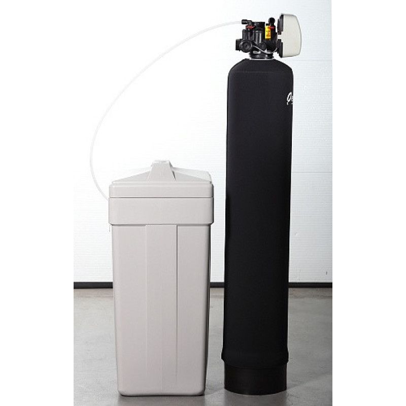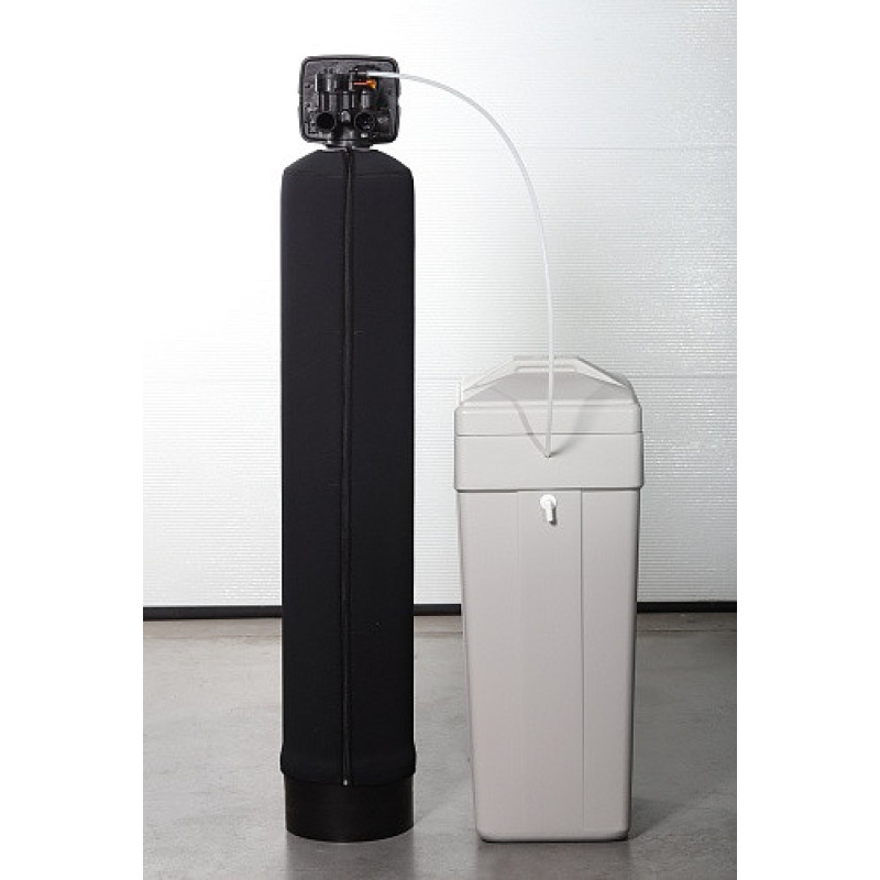 корпус фільтра, багатофункціональний керуючий клапан, бак з сольовою системою для регенерації, унікальний фільтруючий матеріал Ecomix A